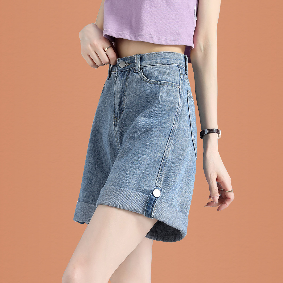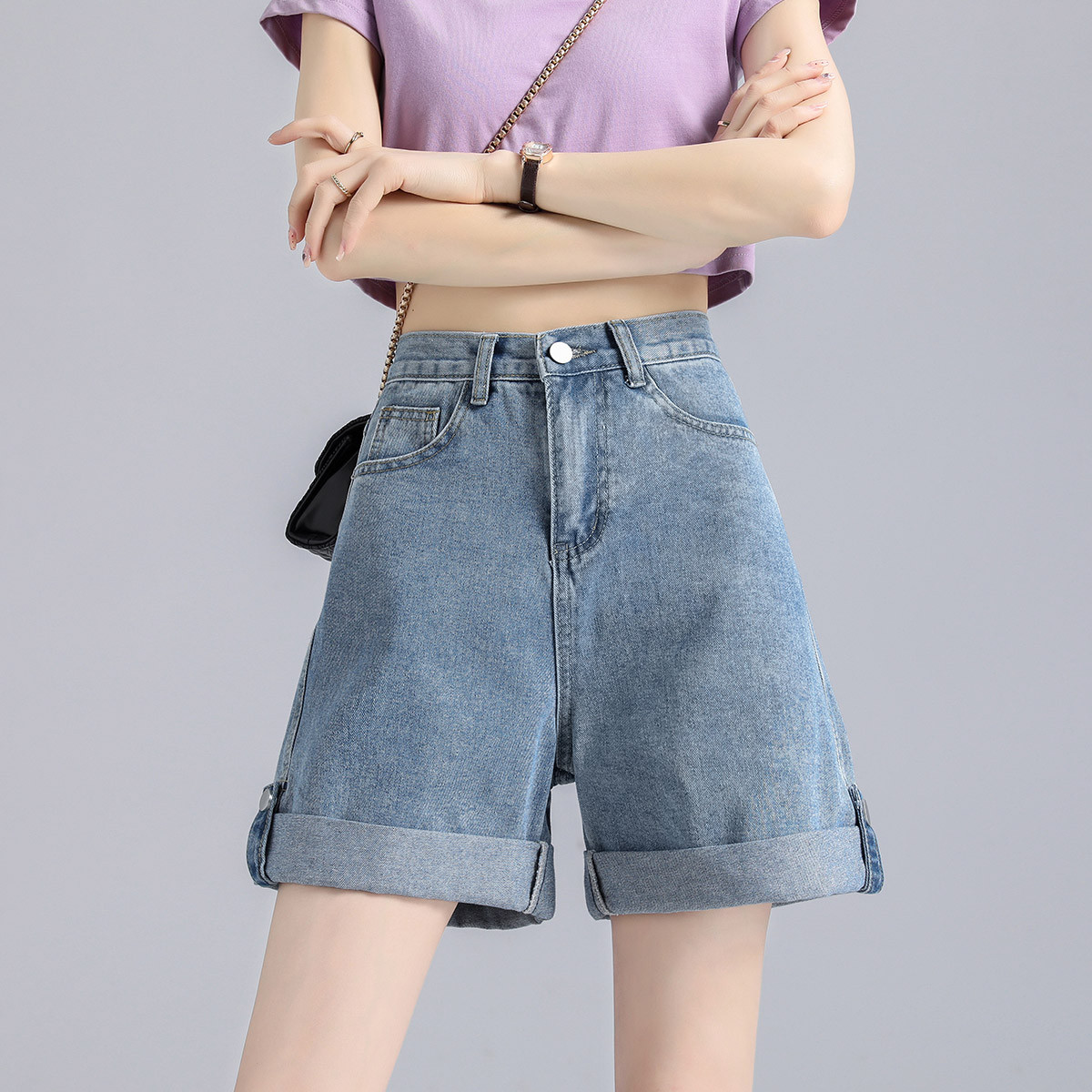 牛仔短裤女夏季薄款宽松显瘦直筒牛仔裤a字五分裤阔腿休闲牛仔裤desc1