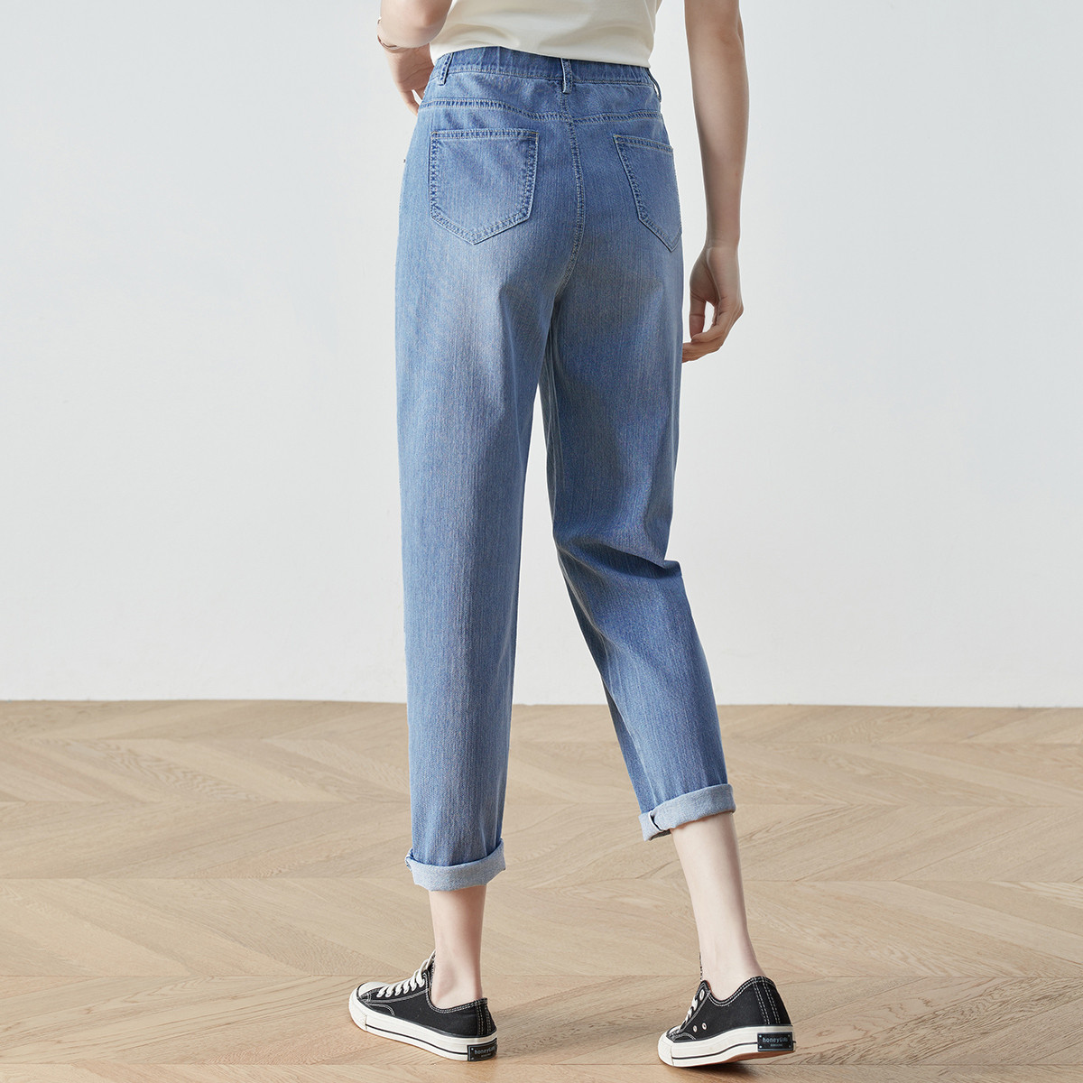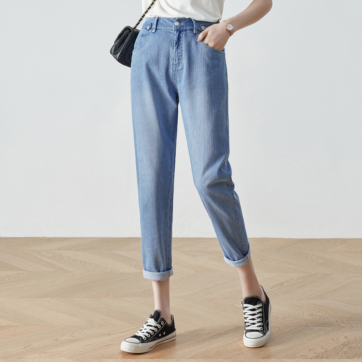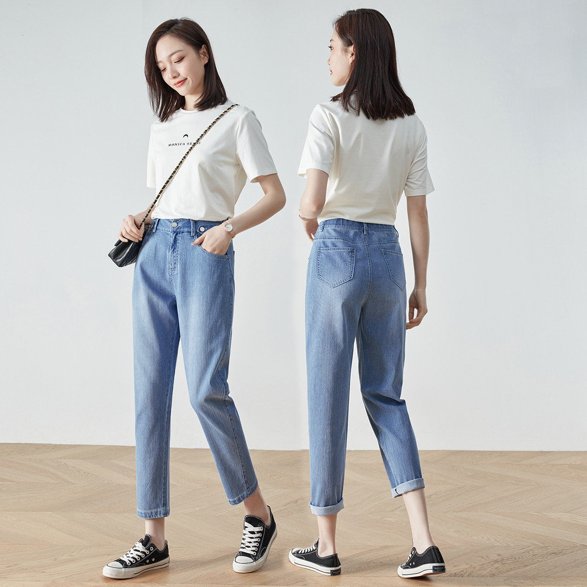 薄凉感冰丝裤女夏款高腰老爹牛仔裤女冰氧吧宽松九分哈伦裤子女22